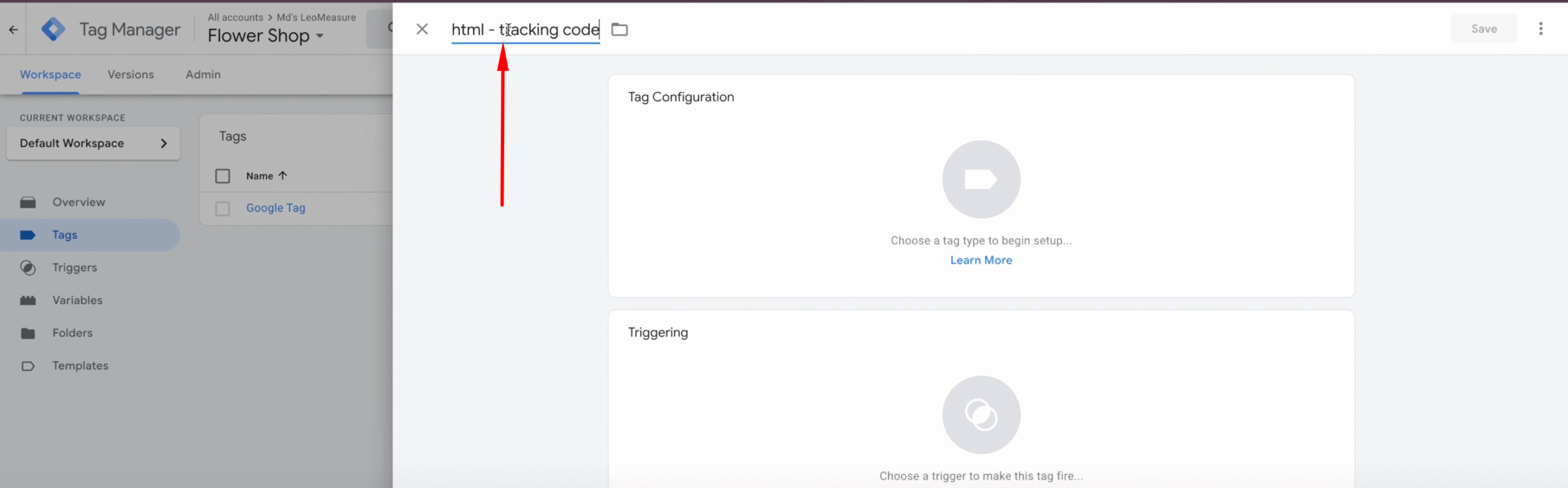 In Google Tag Manager, go to the “Tags” section and click the “New” button in the top-right corner to create a new tag. And give a title for the tag