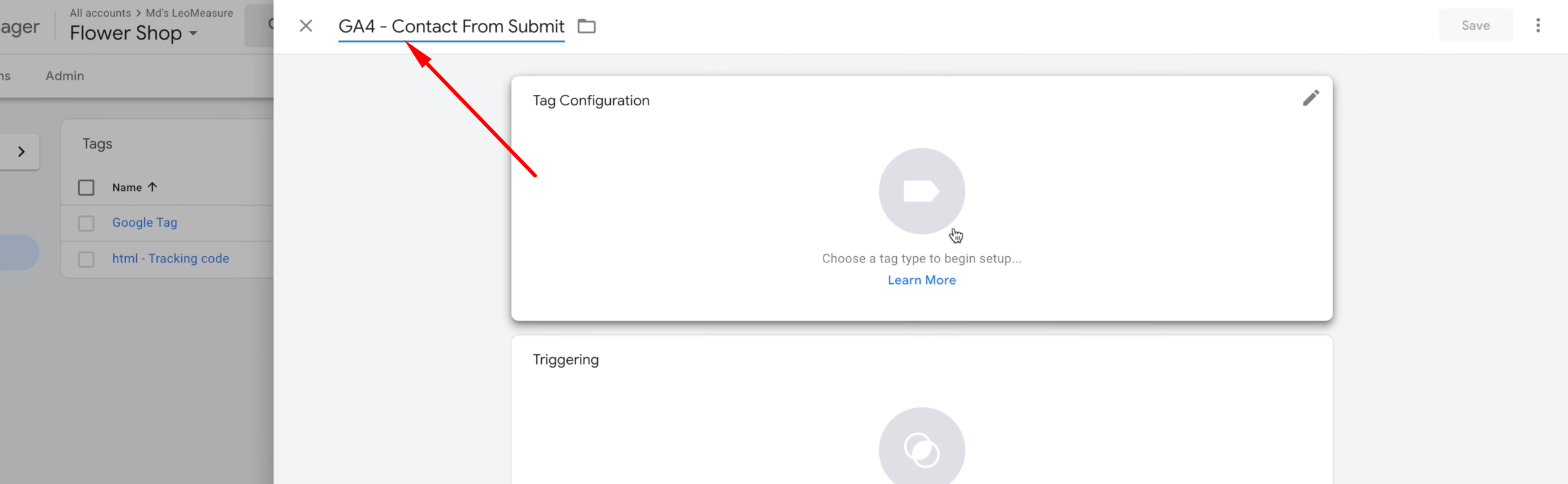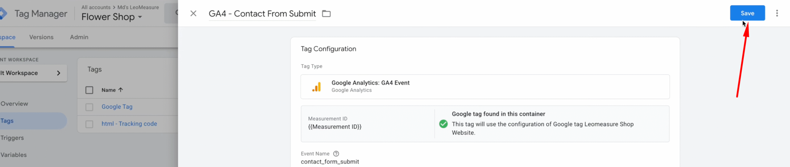 Now you can give a title as “GAds – Contact Form Submit” for the tag and Save it.